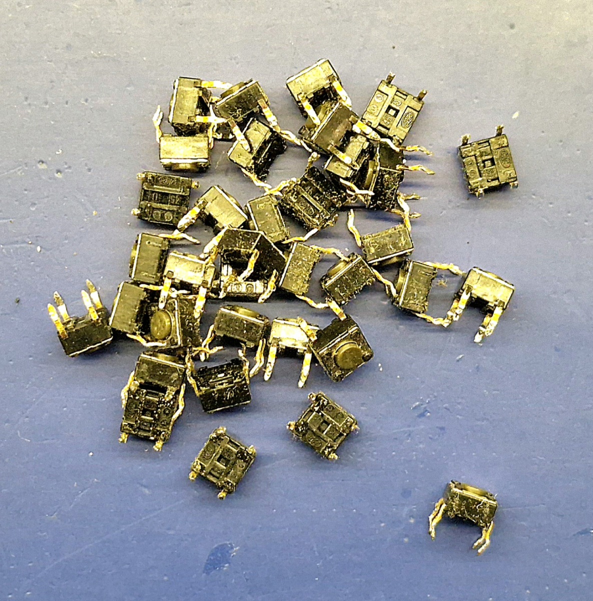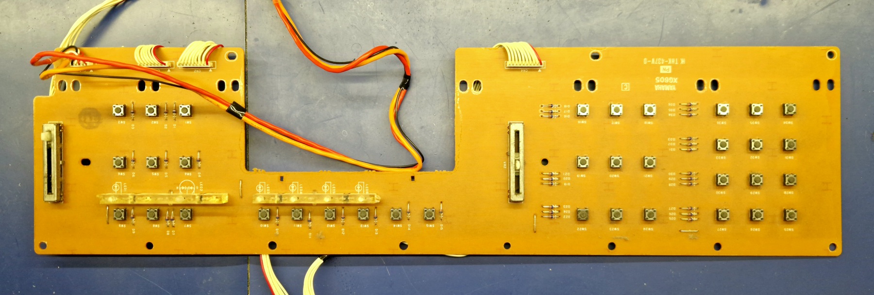 This is a fairly typical fault in many decades-old devices — not only synthesizers — where the contact elements are cheap TACT-type microswitches. In such a case, it was necessary to replace all 36 microswitches, which required completely disassembling the unit, since the circuit board with these components is located right behind the front panel. As a result, the whole repair became much more complicated and took a bit more time.