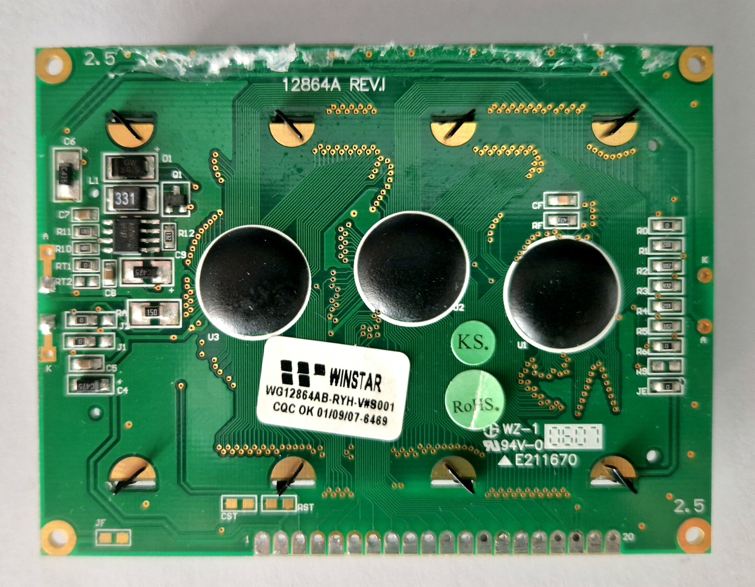 And now the worst part: the original Winstar WG12864AB-RYH-V#S001 display was discontinued in 2006. When I contacted Winstar’s helpdesk, they told me that the display often recommended online — model WG12864AB-TMI-V#N (blue) — was not fully compatible, because it uses a different display controller. The original version used AX6107/AX6108 controllers, while newer models use NT7101/NT7108, which have slightly different timing requirements for control signals.