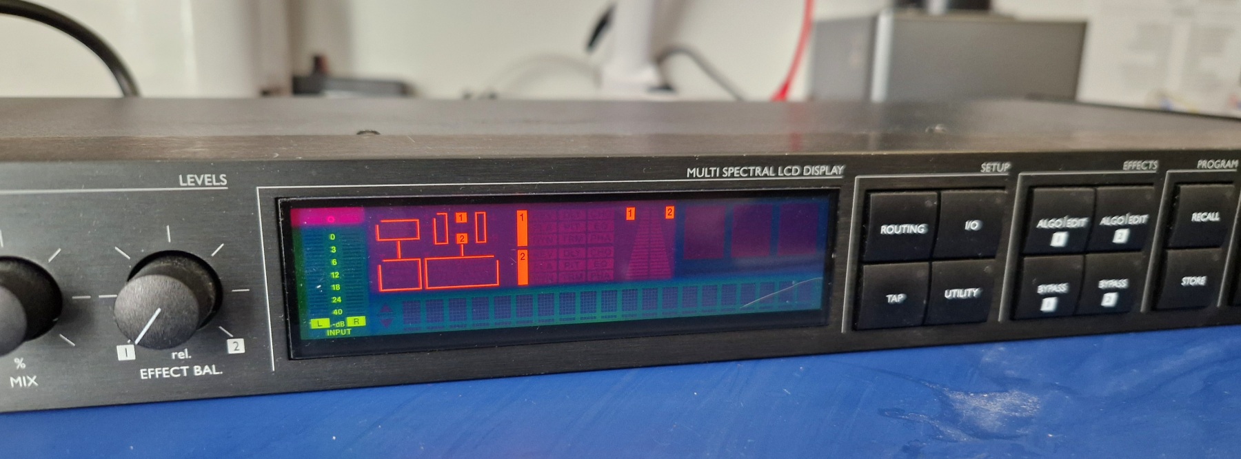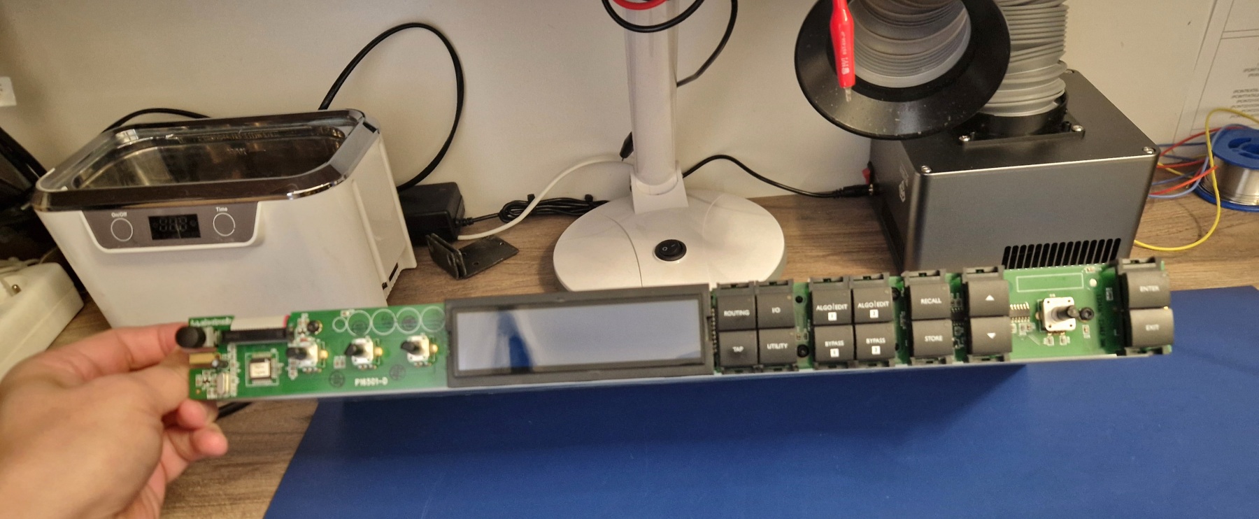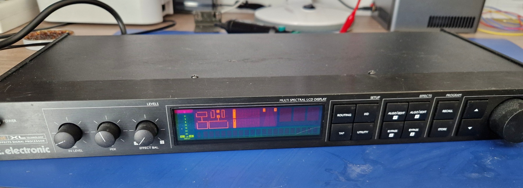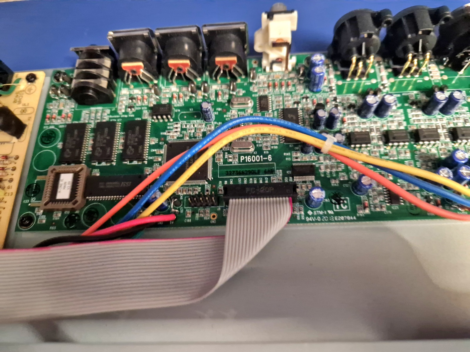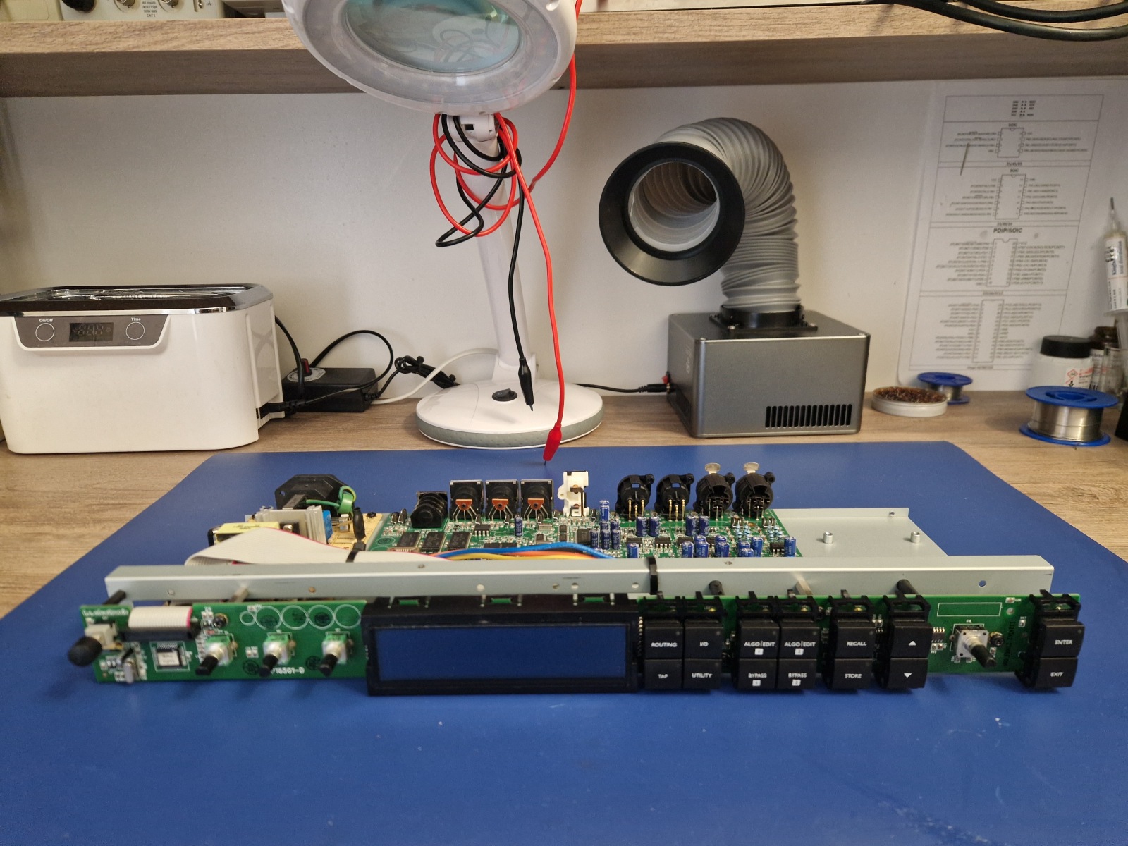 This effects processor service included repair of the LCD display, or more precisely, replacement of the IDC ribbon connecting the device panel to the main board (with sockets). Unfortunately, the original mounting of the device’s control panel PCB to the chassis was insufficient. As a result, operation of the adjustment potentiometers causes gradual degradation of the display connector, leading to its malfunction. As part of the repair, this mounting has also been improved.